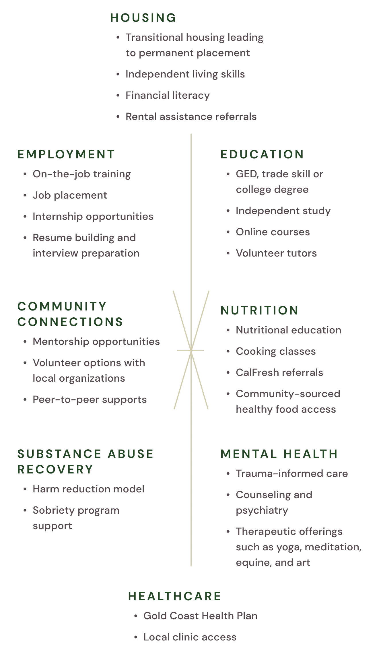 No person is the same, so our program shouldn’t look the same for each participant. Each young adult’s life history, current needs, and desires for the future help to shape their personal program design.